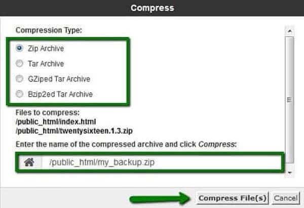 It is useful to store a group of files in one file for an easy backup or for a transfer to another directory, as well as compress large files. Compressed files take up less disk space and are downloaded faster via the Internet. The data can be compressed into a single *.zip, *.Gz, or *.Bz2 archive