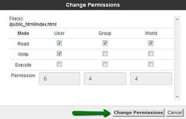 Or right-click on the file/folder and use the Change Permissions option from the drop-down menu