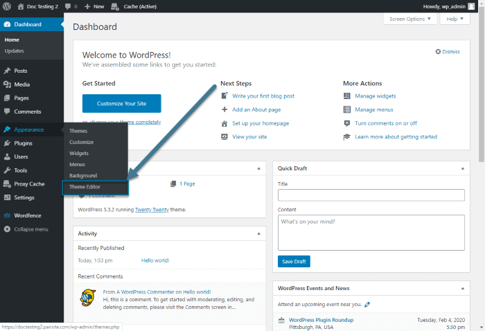In the left sidebar, hover over Appearances, then click Theme Editor