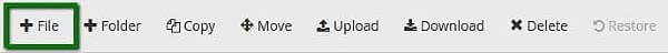 Click on +File icon – a new pop-up box will appear to enter the name of the file you wish to be created.