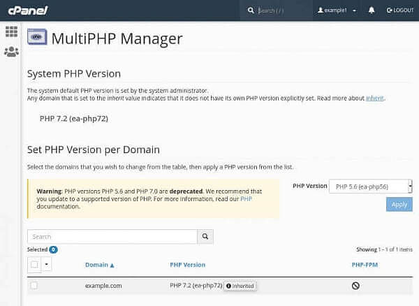 Note: In EasyApache 4, each domain or virtual host can use any currently-installed PHP version or currently-installed PHP-FPM setting.